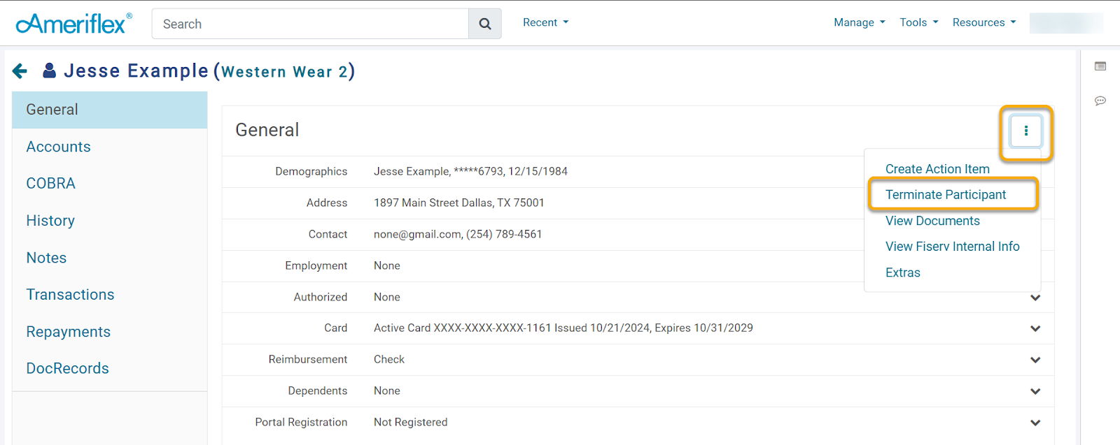 12. After clicking Save, you will be returned to the COBRA tab under the participant. Select the three-dot ellipsis in the top-right corner.