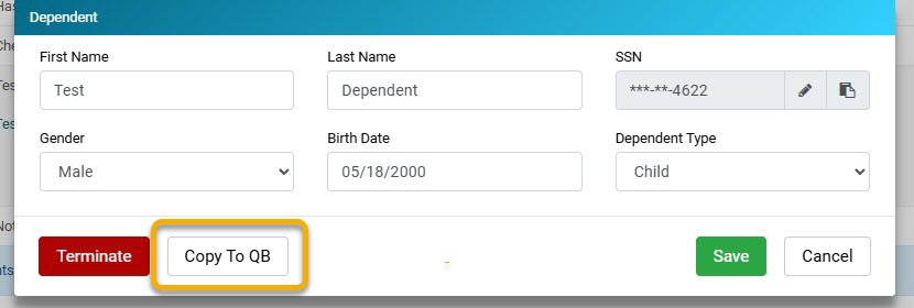 5. On the Dependent pop-up screen, select Copy to QB.