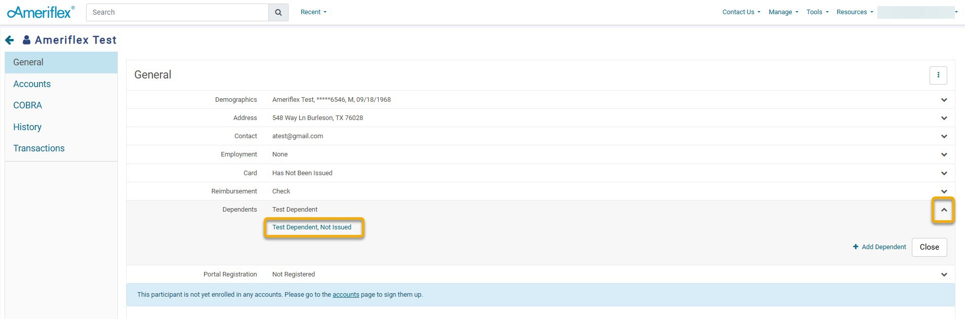 4. Select the Dependents drop-down arrow, then select the name of the desired Dependent.