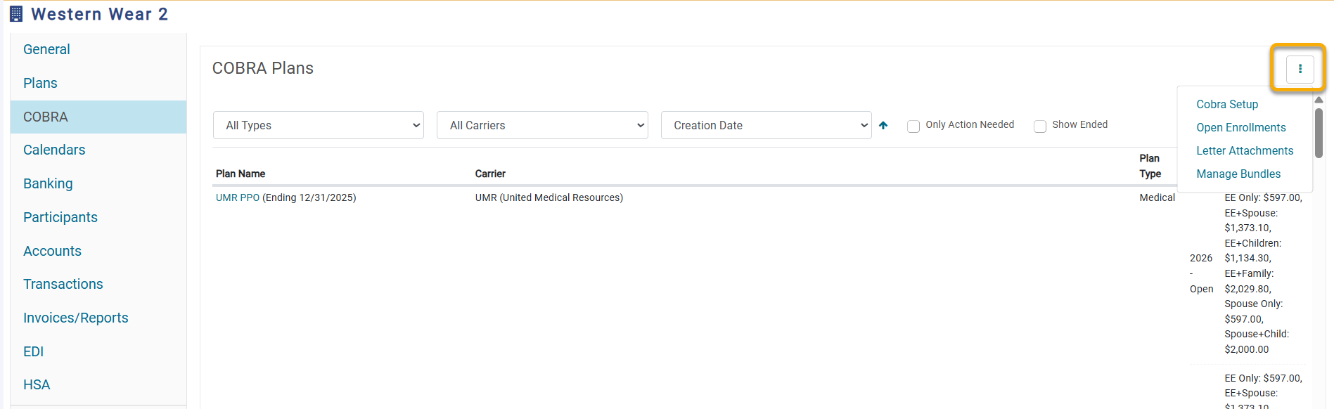 4. Click on the COBRA tab on the left-hand side of the screen.