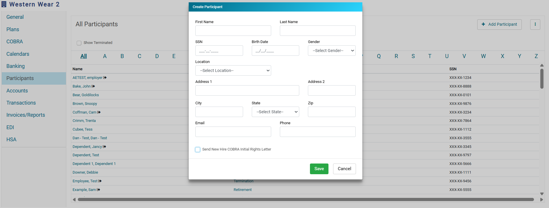 Note: Do not check Send New Hire COBRA Rights Letter.