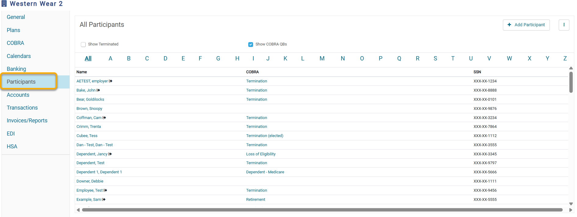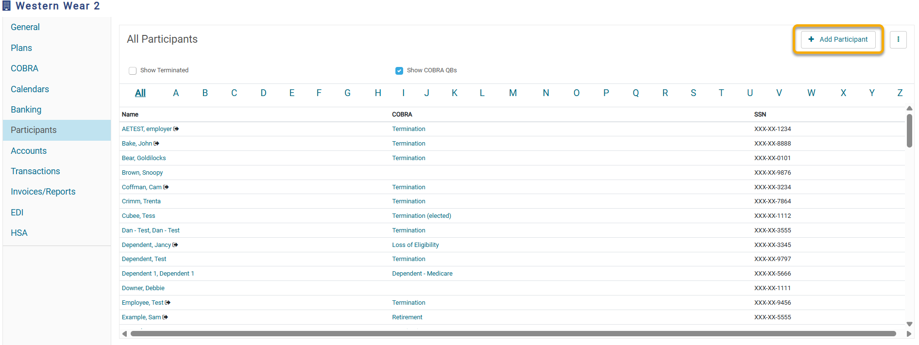 3. Click the Add Participant button in the top right corner of the Participants screen.