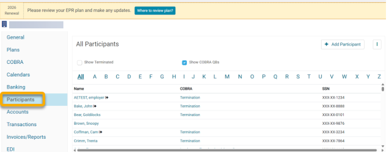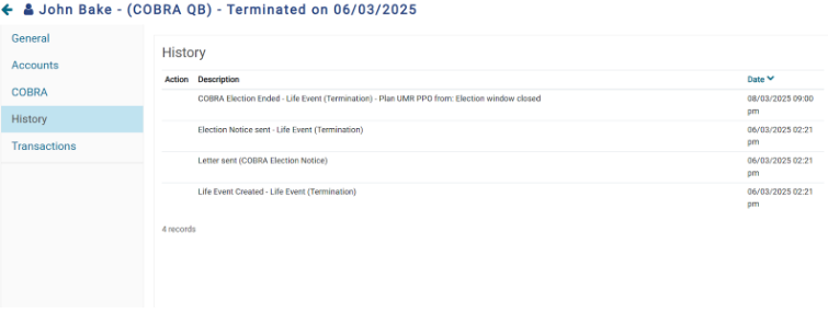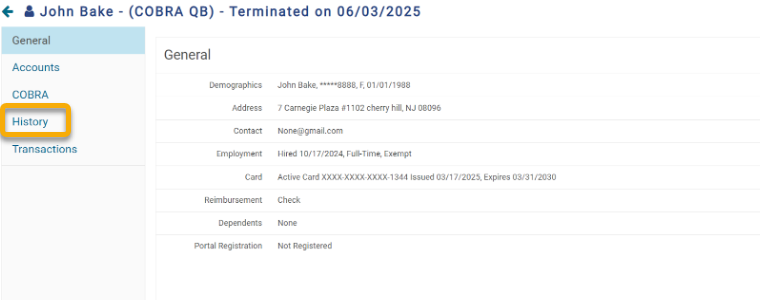 4. On the desired participant's page, click the History tab on the left-hand side of the screen.