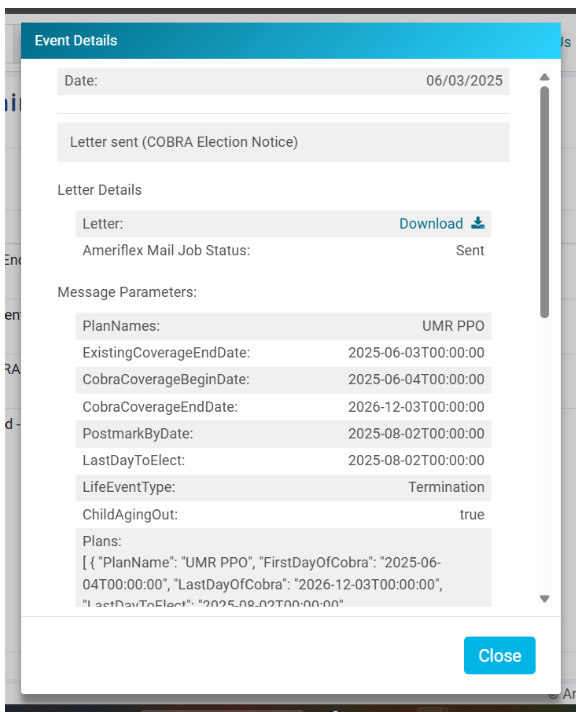 5. All letters and communications to the participant will appear. Click on the desired communication to view their Event Details.