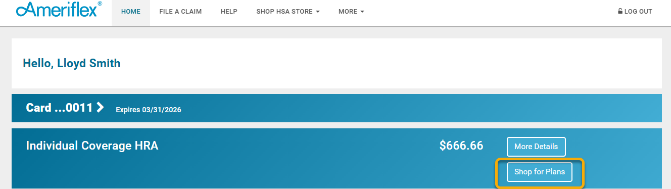 2. Click the Shop for Plans button inside of the Individual Coverage HRA field.