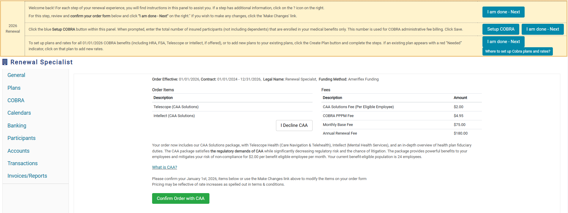 Not only does our CAA Solutions Package give you peace of mind regarding compliance, but it also comes at a low, unbeatable price. Protecting yourself has never been easier—be sure to include our CAA Solutions Package in your upcoming benefits offerings! When your renewal window arrives, you can easily add our package to your existing plans when accepting your Terms & Conditions and confirming your order.